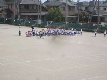 今年の運動会は「走・跳・投」の力をバランスよく育成することを目指しています。玉入れは投げる力を伸ばすために行います。「なかなか入らないな」とつぶやく高学年の子供たちでしたが、だんだんとコツをつかんできたようでした。