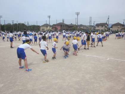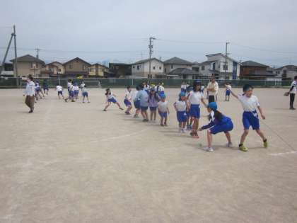 長縄跳びを団ごとに分かれて練習しました。膝を上手に使って回したり、並び順を工夫したりする姿が見られました。