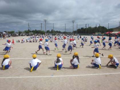 個人競技が終わって、1・2年によるタグ取りです。競技だけではなく、入退場も上手になりました。