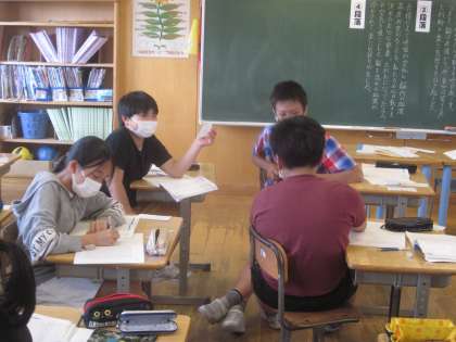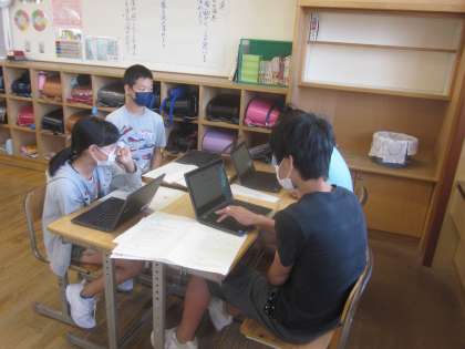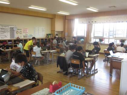 クロムブックを使って、自分の考えを入力し、グループの仲間とグループトークを楽しんでいました。「自分の考えをもつ」ことが、対話的な学習になる、第一歩です。