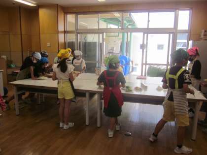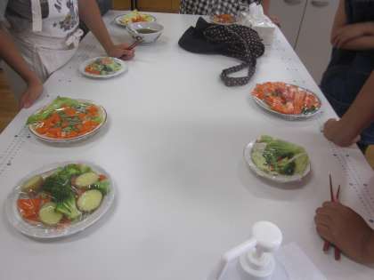 自分が作りたいサラダの食材を持参して作りました。「家でも作ってあげたい!」「お母さんが忙しい時に手伝ってあげたい!」とうれしそうに話していました。