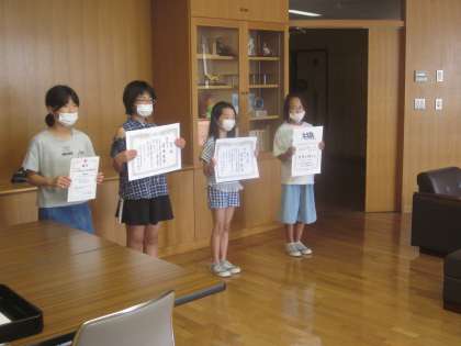 校長室で受賞伝達式を行いました。頑張る大広田っ子たちです。