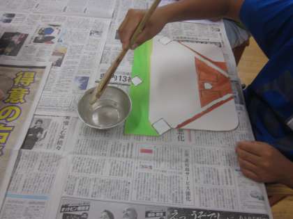 図画工作科でホワイトボードを作成しました。今日はニス塗りです。