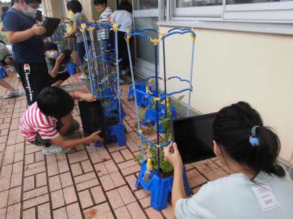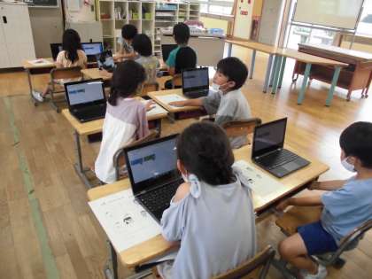 野菜の観察をするために、クロムブックを使って写真を撮りました。撮った写真を友達と見せ合って楽しみました。クロムブックの使い方の分からないところは、友達同士で教え合い、みんなで学習を進めました。