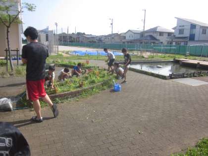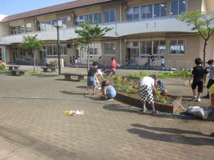 3年生は今日も自主的に花壇の草むしりをしています。草がとても少なくなりました。