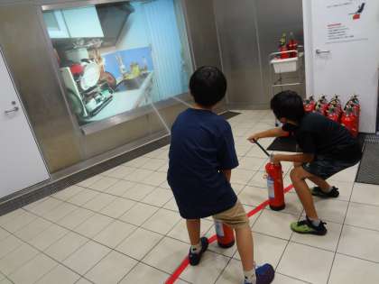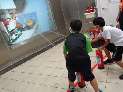 四季防災館に到着しました。最初は消火器の使い方を練習しました。