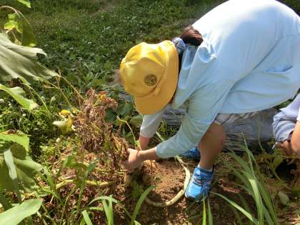 土の中からいろいろなサイズのじゃがいもが出てきて、とても楽しく収穫できました。