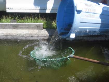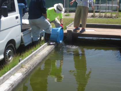富山市内にある小学校の池の閉鎖に伴い、鯉をいただきました。鯉は池の水に慣れ、元気に泳いでいます。