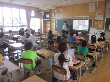 新しいALTの方が着任されました。写真は5年生の授業です。