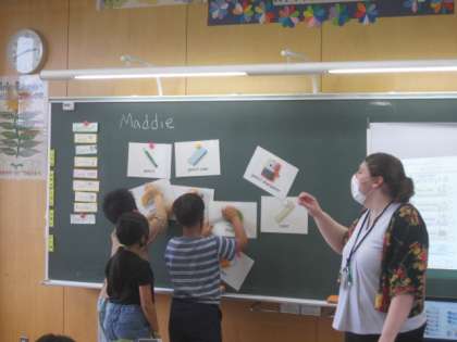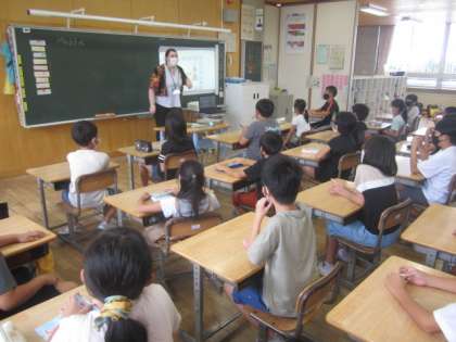 外国語活動では、新しいALTの先生の自己紹介を交えたクイズやこれまでの復習を兼ねたゲームなどに楽しく取り組んでいました。