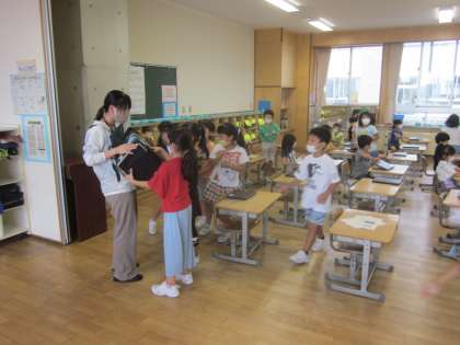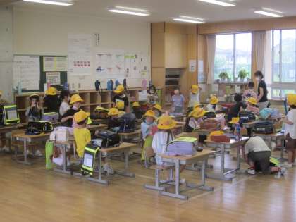 1、2年生はクロムブックを初めて持ち帰ります。今日はケースへの入れ方や持ち運び方を学習しました。