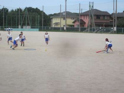 4年生は、グラウンドでティーボールの学習に取り組んでいます。目指せ!大谷選手!
