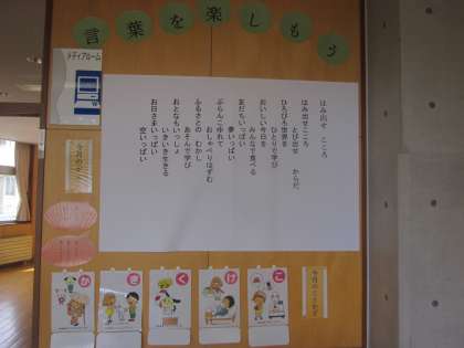 学校内の掲示物を更新しました。休み時間に子供たちは立ち止まって見ていました。