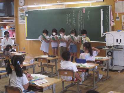 1年生は「やくそく」という文章の音読発表をグループで行いました。心を込めて読めましたね。