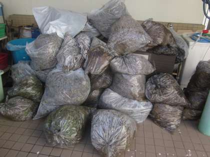先週は、どの学年も草むしりをがんばりました。草はゴミとして捨てますが、ゴミ袋で一杯です。