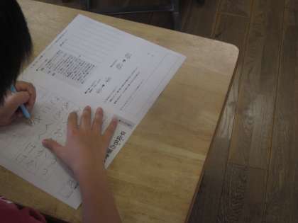 5年生の書写の時間です。今日は硬筆に取り組みました。ひらがなとカタカナの復習です。一人一人が自分のペースで丁寧になぞったり書いたりしました。