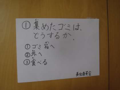 美化委員会の校内クイズラリーです。