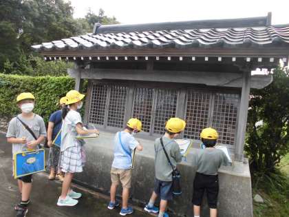 「大きな石碑だね。」 「しっかりとメモしておこう。」