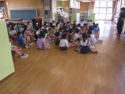 2年生は学年全体で、アリーナの正しい使い方について、互いの考えを聴き合っていました。