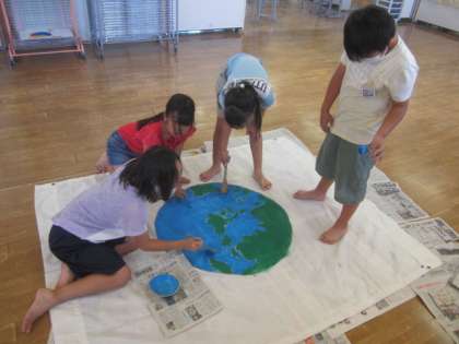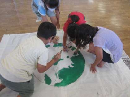 環境のためにできることをがんばろうという気持ちを込めた旗作りに励んでいます。
