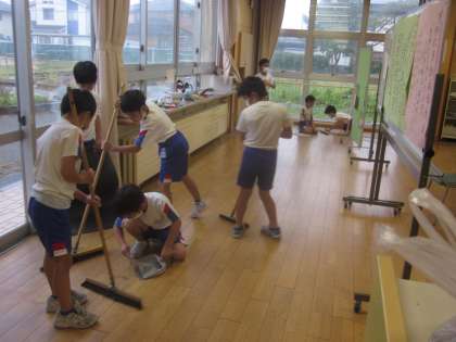 始業前に出入口付近の掃除をしています。とてもきれいにになりました。
