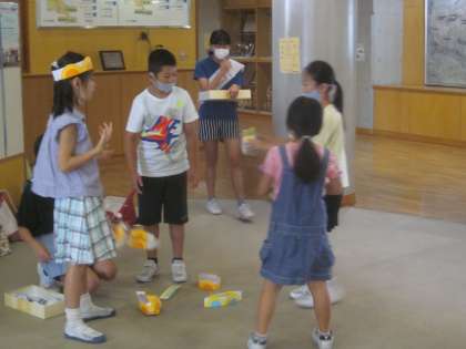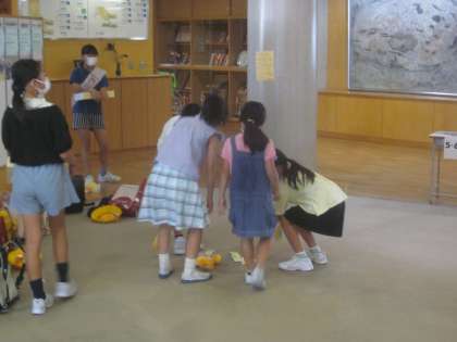 2年生の子供たちがあいさつ運動に参加しようと準備しています。
