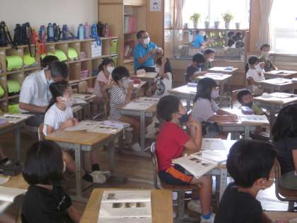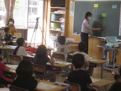 国語科の研究受業を行いました。かにの仲間の「もくずしょい」がどこに隠れているか学習しました。