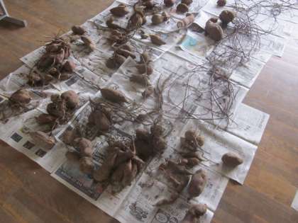 2年生のサツマイモです。先週収穫して干しています。調理実習が楽しみです。