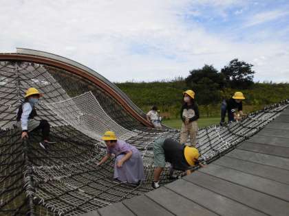 海王丸パークにある遊具を使って、思いっきり体を動かしました。友達と鬼ごっこをしたり、かくれんぼをしたりして、楽しみました。