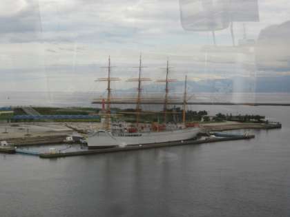 帰りのバスで、新湊大橋の上から撮った海王丸です。かっこういいですね。