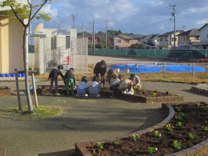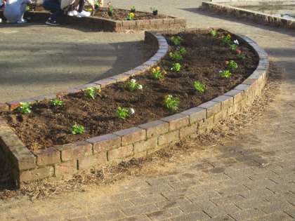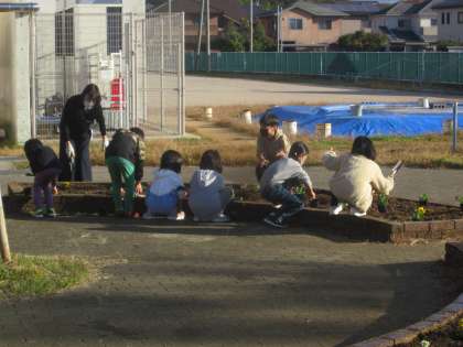 パンジーとビオラを植え替えました。11月末にチューリップを植えて完成です。