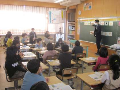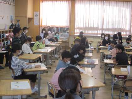 3年2組で講師をお招きして研究授業を行いました。大豆が豆腐、納豆などに変身していく過程を考えました。