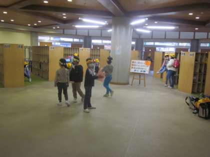 今日は雨だったので玄関であいさつ運動です。いろいろな学年が参加するようになってきました。