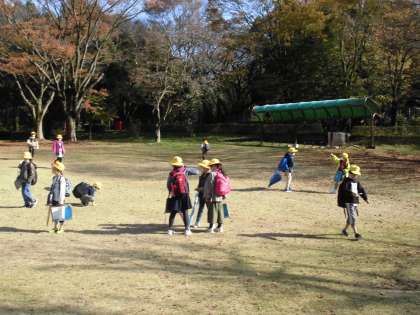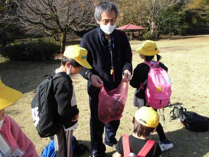 最後は芝生のゴミ拾いです。使った場所はきれいにして帰ります。ファミリーパークさん、ありがとうございました。