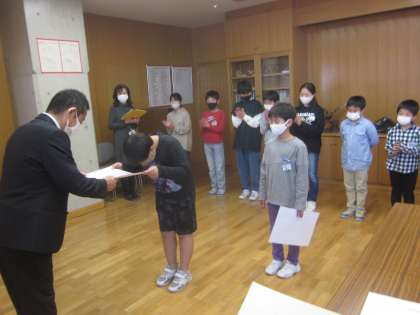 大広田っ子タイムに受賞伝達式を行いました。みなさん、頑張りましたね。