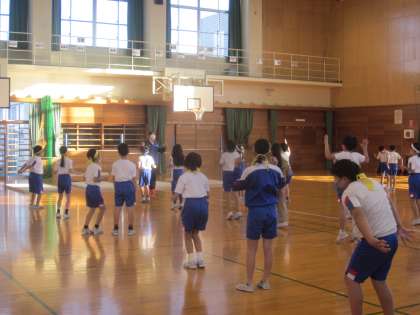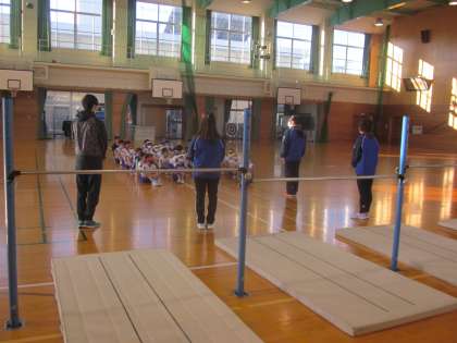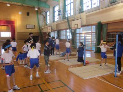 富山市役所、富山市体育協会から4名の講師の先生が来校されました。3、4年生が鉄棒運動の指導を受けました。