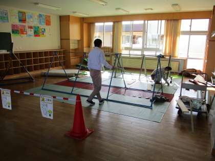 新しい鉄棒を買っていただきました。校長先生や用務員さんが鉄棒の寸法を計測したり、安全性を確認したりして準備してくださっています。4年フロアの子供たちは、準備の様子を毎日見ているので完成を心待ちにしています。