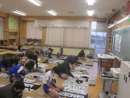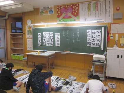 書き初めの練習をしました。前回よりも上手に書けました。