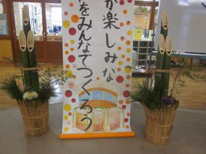地域の方から先日いただいた門松を正面玄関に飾りました。