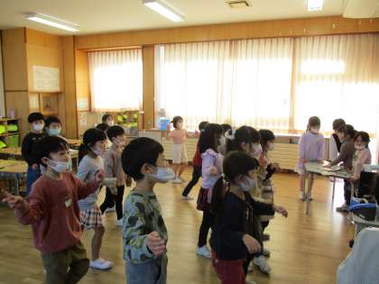 2学期の終わりに、係で企画したゲームや遊びをしまいした。寒さにまけず、みんなで仲良く楽しく活動をすることを目当てにし、天下ドッジやこおりおに、カタカナ見つけ、ダンス、ビンゴ等をしました。