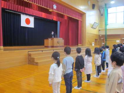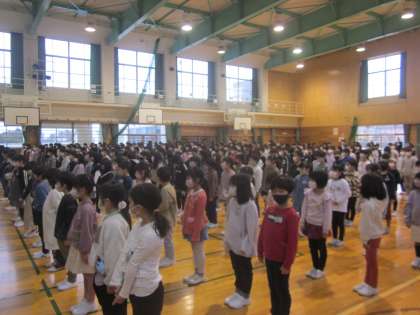 静かに始業式が始まりました。話を聴く態度が2学期よりもよくなりました。ほどよい緊張感をもって式に臨みました。