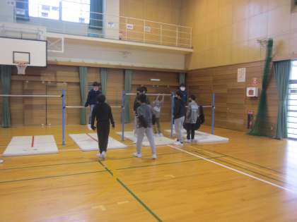 体育館に鉄棒を設置しました。金メダルを目指して頑張りましょう。