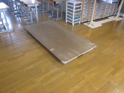 二重跳び練習の補助用具です。低・中・高学年で1台ずつでしたが、用務員さんが各学年につくってくださいました。写真は古いものです。