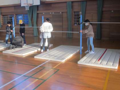 毎朝、運動委員会の子供たちが鉄棒の設置を手伝ってくれています。安心して鉄道に取り組めます。