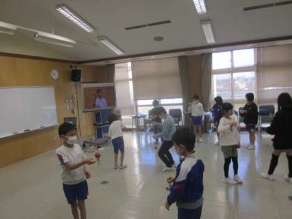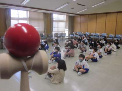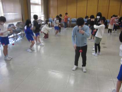 今週はけん玉体験週間です。動画を見ながら楽しく取り組みました。