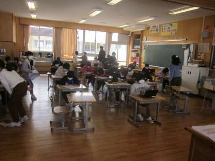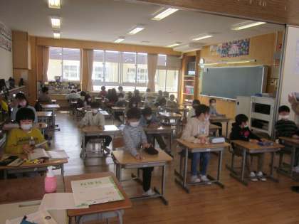1組は理科、2組は社会のテストをしました。早く終わった人はクロムブックです。
