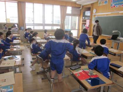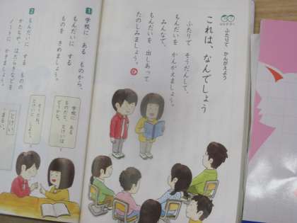 国語科です。ヒントを出してもらいながら、クイズに答えています。