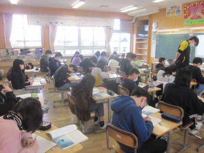 国語科の授業です。主人公の太一がクエに銛を打たなかったことについて考えました。