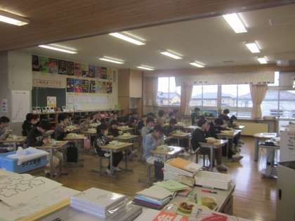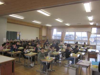 6年生は静かに給食を食べながら、うれしそうに聴いていました。