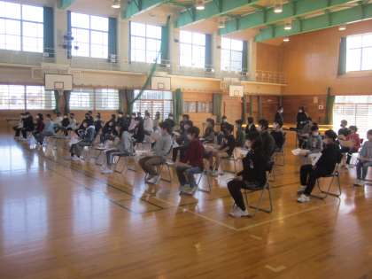 卒業証書授与の練習をしました。姿勢を正して受け取り、堂々と歩きました。